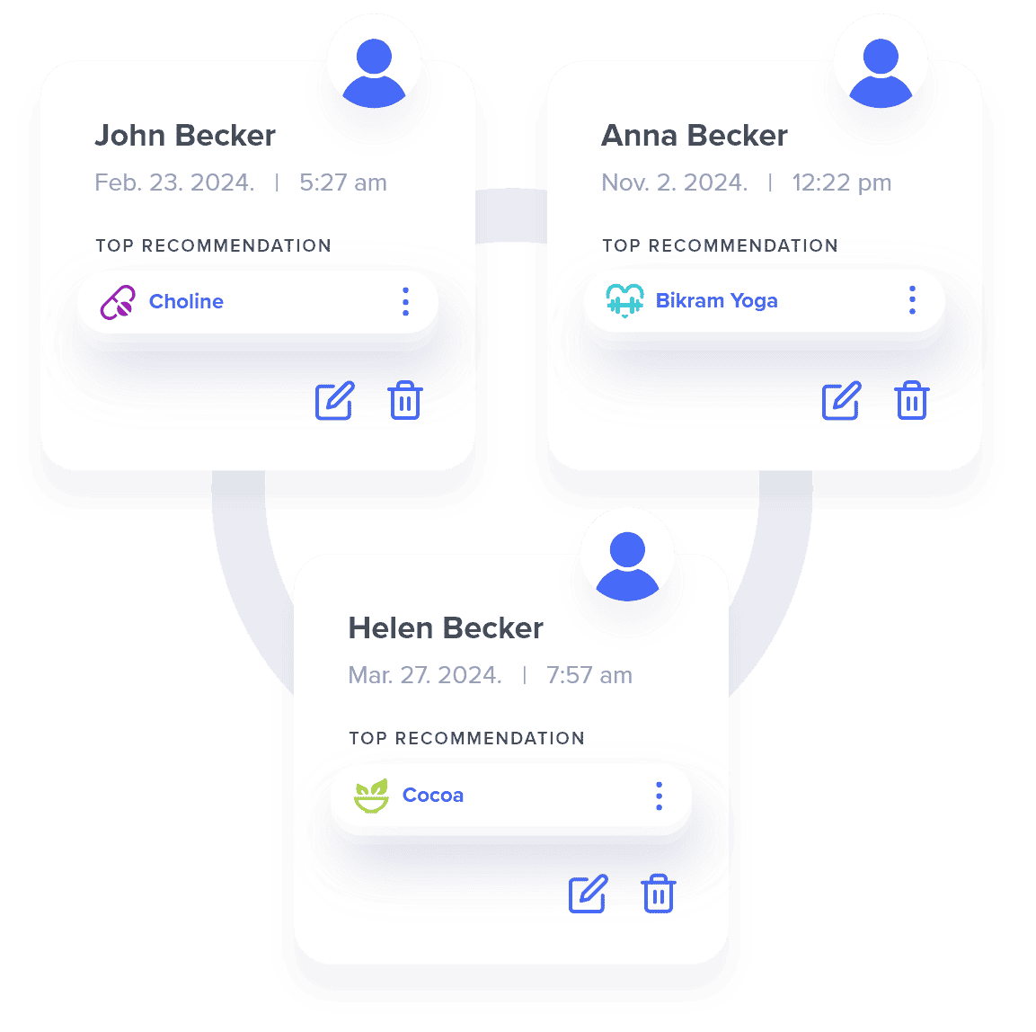 Your family plan includes 3 profiles, each with their own tailored health reports and recommendations.