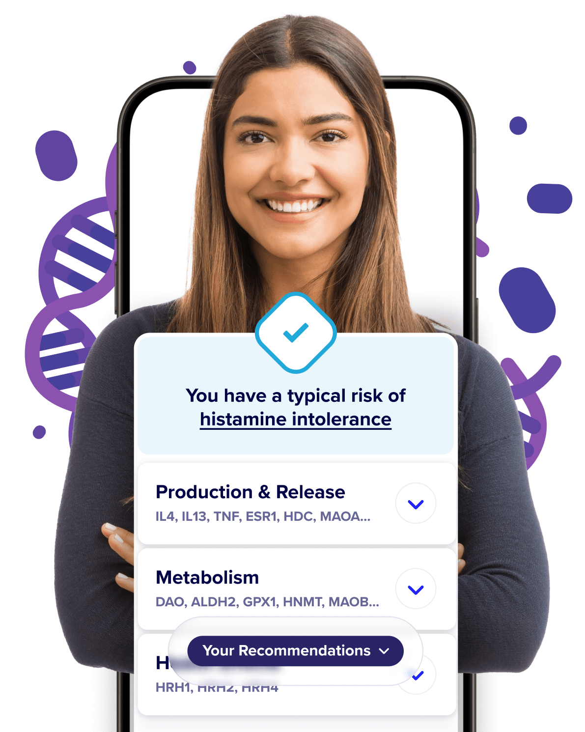 Histamine affects energy, digestion, sleep, skin, sinuses and more. Your ability to make, break down and respond to histamine is shaped by your genes. By understanding your unique genetics, you can support histamine clearance, calm reactivity and reduce the risk of flare-ups. SelfDecode helps you make smarter choices to keep histamine in a healthy range.