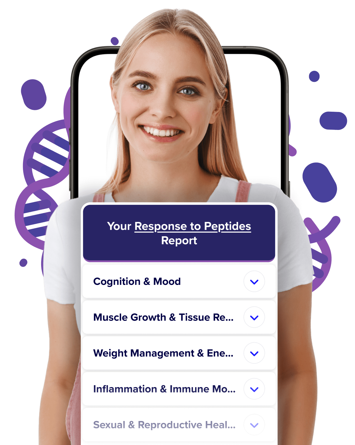 These insights help you understand how your body may process, benefit from, or be less responsive to specific peptides that impact: